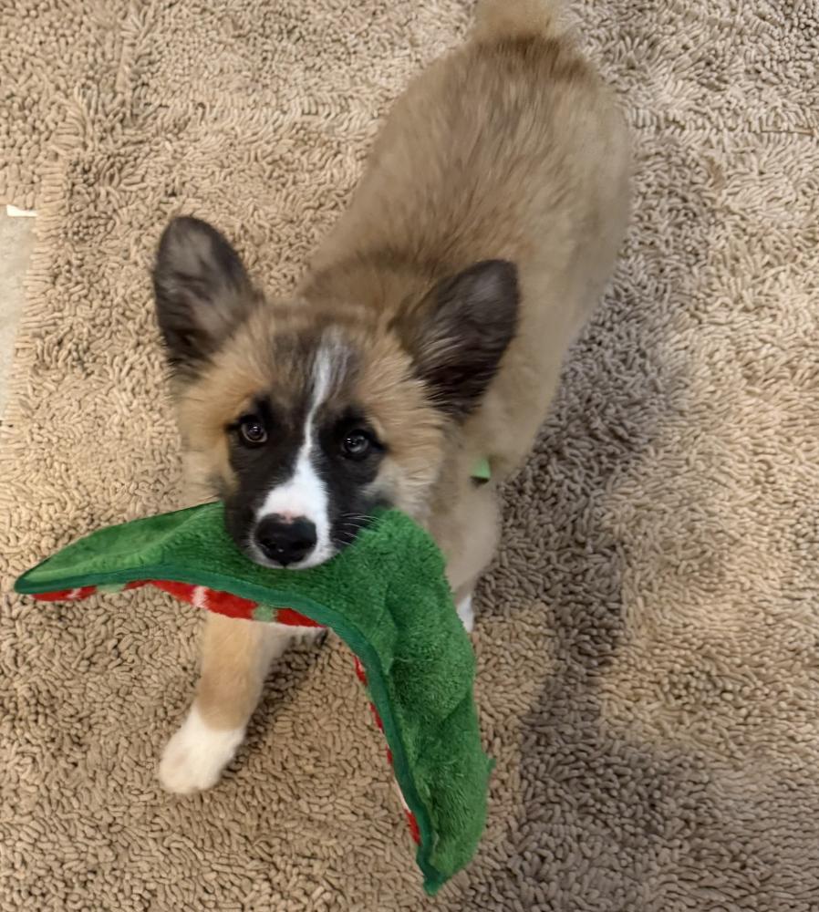 Kodiak is an 11-week-old, 20lb male puppy who's already living up to his strong, lovable name. This adorable floof is all about fun and friendship and absolutely loves playing with his foster siblings. Whether it's romping around the yard or tumbling into a puppy pile, Kodiak is happiest when he's with his people and pup pals.