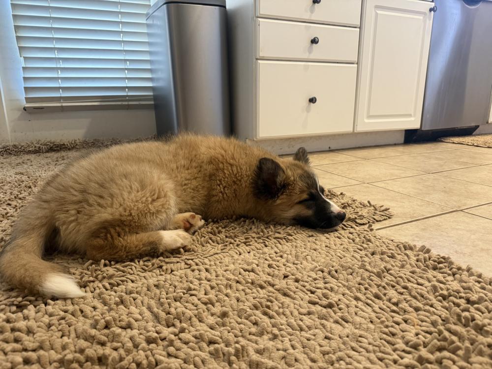 Because Kodiak is going to be a big boy, his ideal home will have a secure, fenced in yard where he can safely burn off puppy energy and grow into his size. He will also need a family or individual who can let him out for bathroom breaks every few hours, as he's still learning and can't be expected to hold it for long yet.