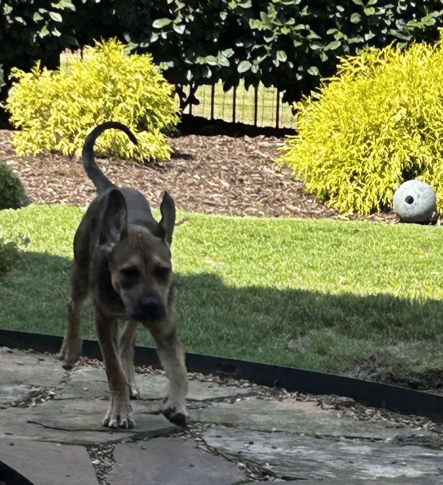 While Phoenix could thrive as an only dog, she would love a furry sibling to play with. Because of her energy and size, she’ll do best with daily walks or a yard where she can play fetch (she’s getting pretty good at bringing the ball back!).