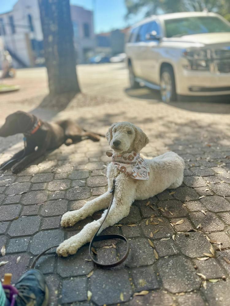 Veda has also made great progress with crate training. She’s mostly clean in her crate and can settle and nap quietly. She’s still improving her bladder control, especially after meals or long naps, but she’s come so far and continues to make progress.